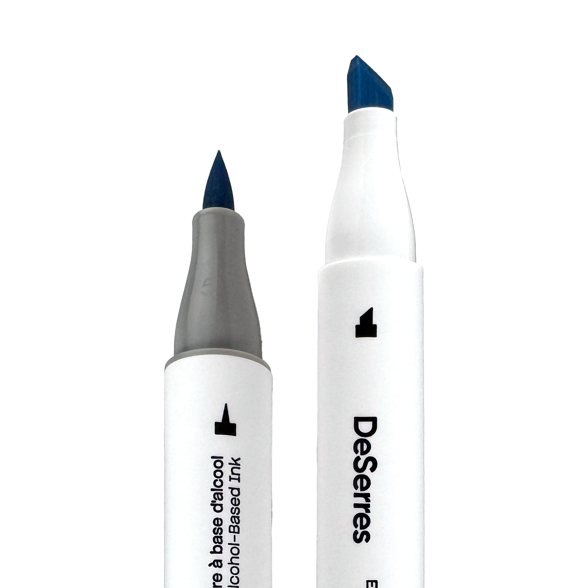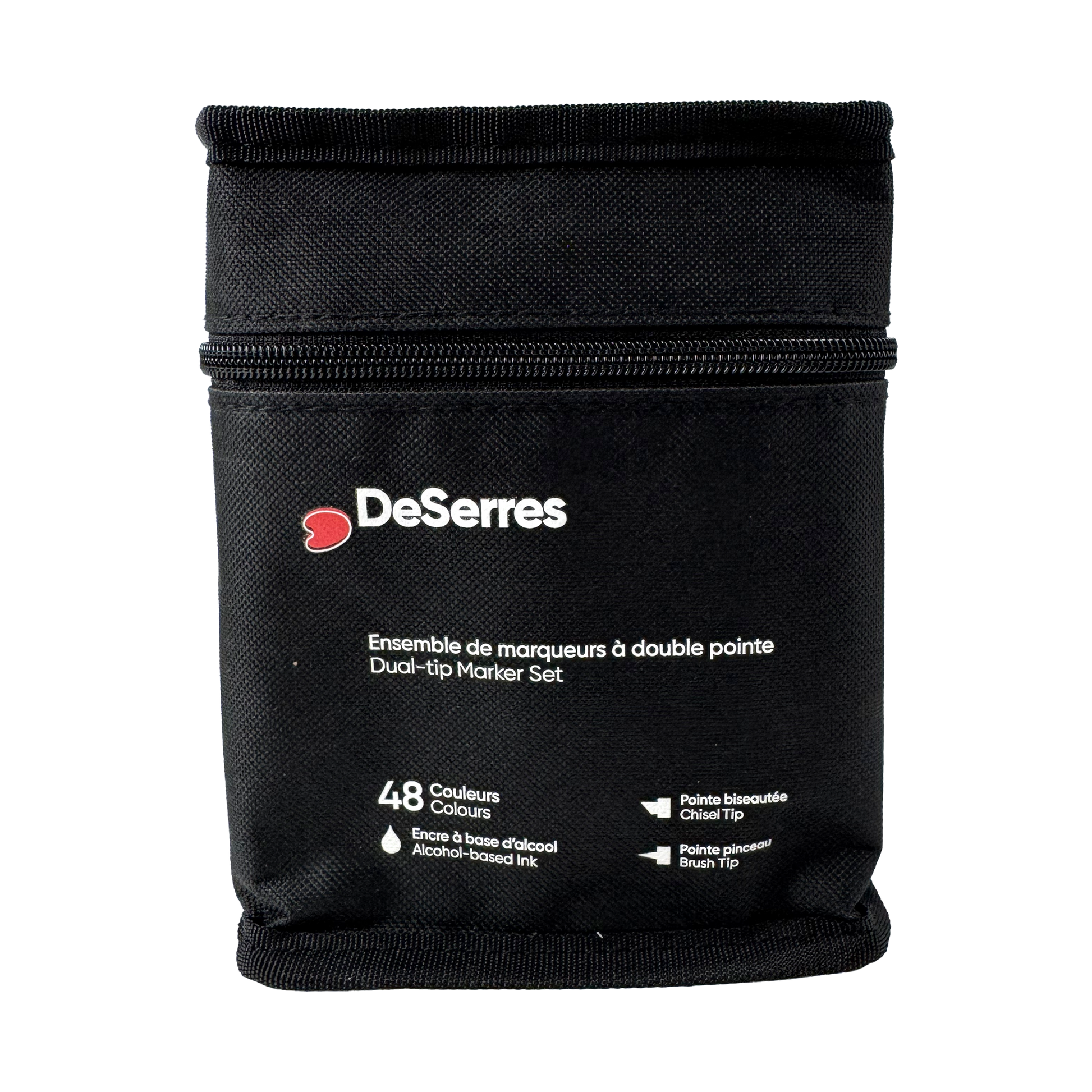 Key Features: • 47 colors + 1 colorless blender • Brush tip for fluid strokes, shading, and lettering • Chisel tip for solid fills and precise outlines • Alcohol-based ink: quick-drying, seamless blending • Color-coded caps • Sturdy fabric case A quality product by DeSerres. ;