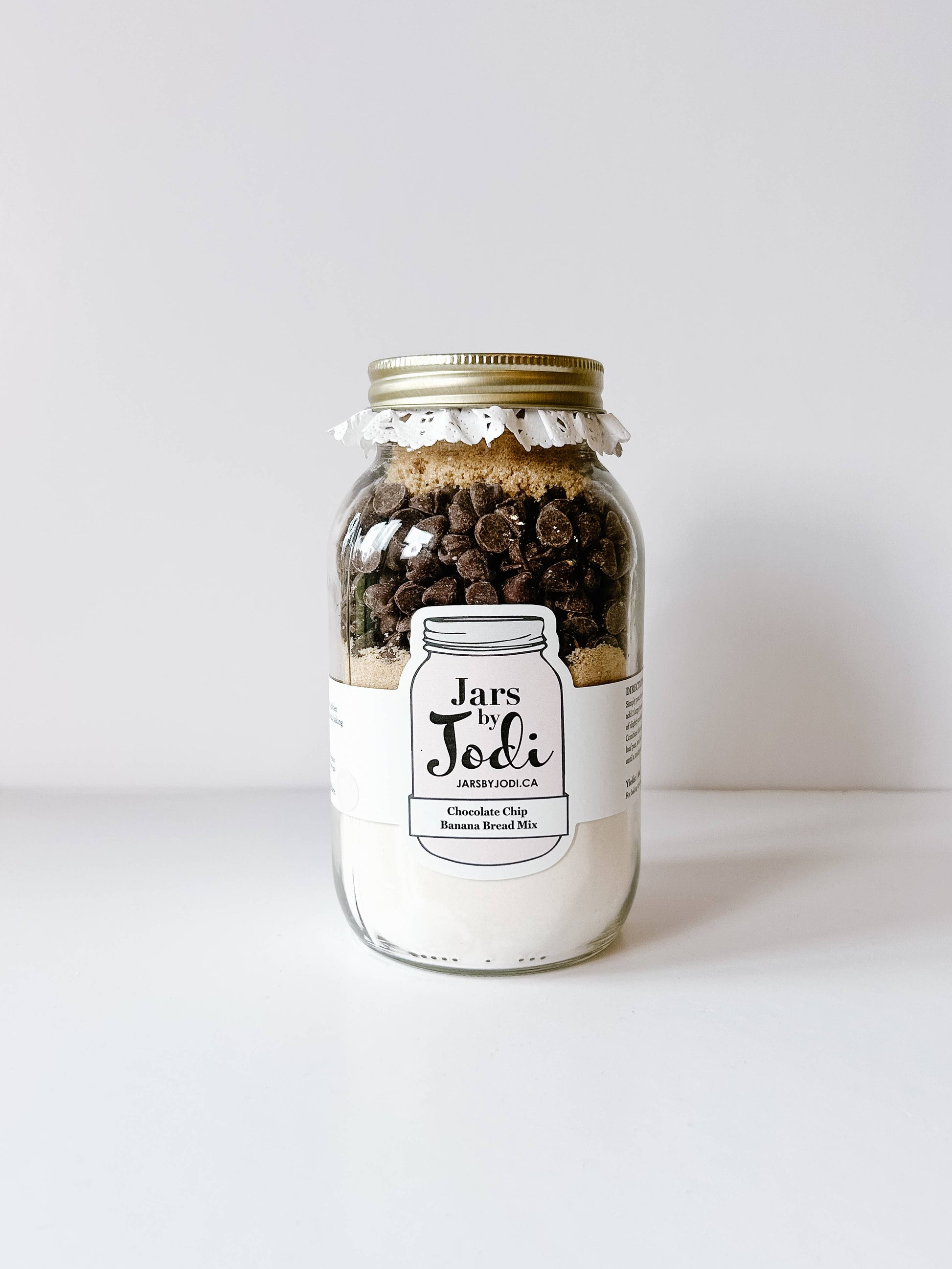 Jars by Jodi creates mason jar cookie and dessert mixes - perfect for party favours, presents, client gifting, or an easy way to make treats at home. Yield per mix: One large banana bread loaf or two medium banana bread loaves