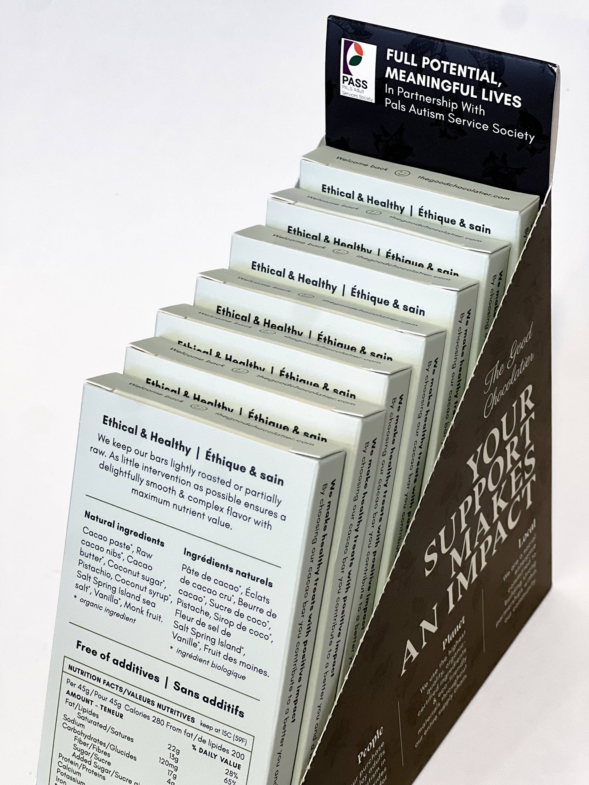 Earthy – Decadent – Energizing Vegan, dairy-free, soy-free, gluten-free, refined sugar-free, paleo Coconut sugar-sweetened The only chocolate out there that is made from a combination of raw cacao nibs and fine cacao paste & butter!
