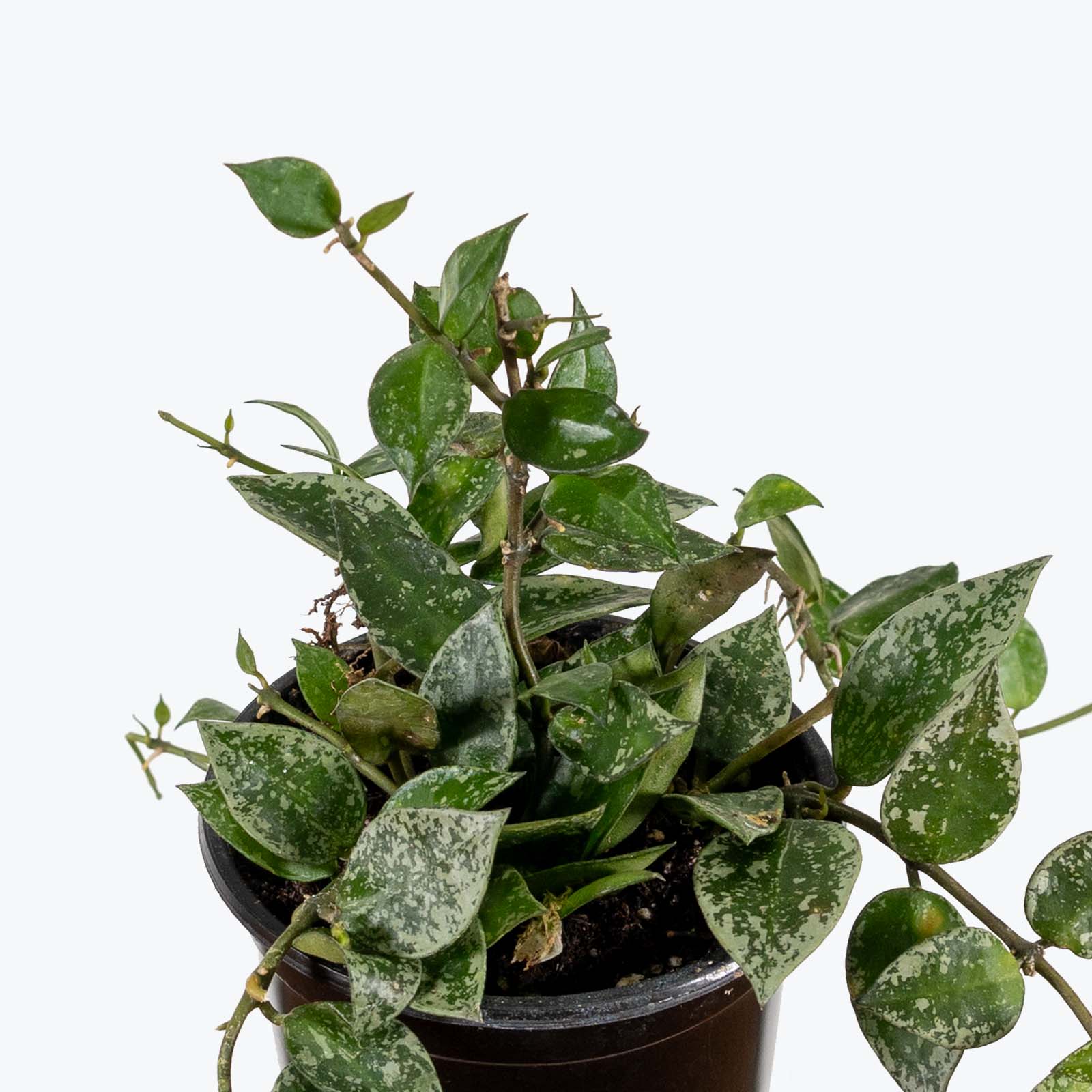 Hoya krohniana Splash is a captivating houseplant, renowned for its small, heart-shaped leaves with silver spots. It adds a touch of elegance and charm to any interior space, offering a delicate and unique aesthetic.