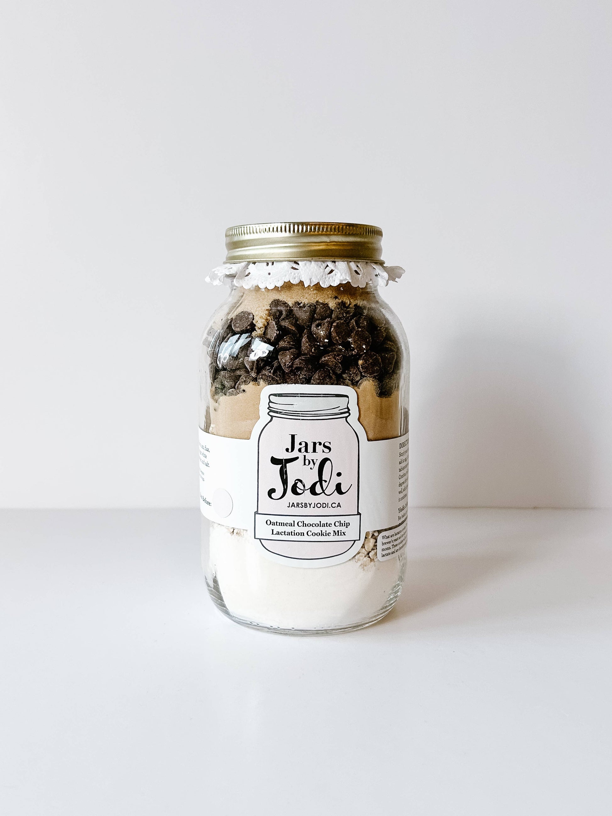 All the baking ingredients to make Oatmeal Chocolate Chip Lactation Cookies. Simply pour the mason jar mix into a bowl and add egg, slightly melted butter, and vanilla, according to the directions on the label. Combine and bake at 350 degrees for 8-12 minutes.