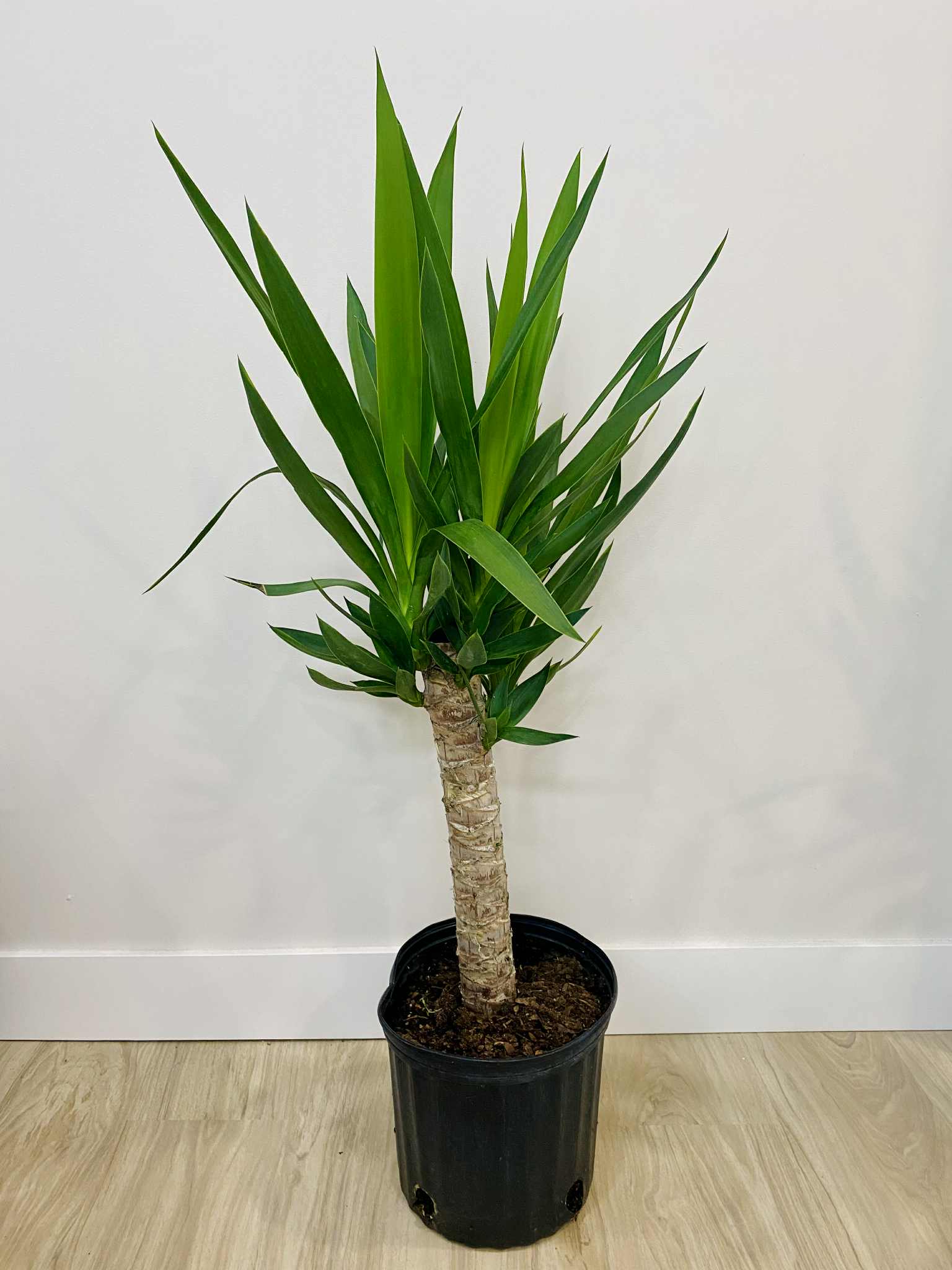 It has thick, woody trunks and sword-shaped leaves that emerge from the top in a rosette pattern. The leaves are a rich green colour, and the plant can produce white, bell-shaped flowers under the right conditions, although flowering is rare in indoor settings. The Yucca Cane is highly appreciated for its architectural shape, ease of care, and air-purifying qualities, making it a popular choice for homes and offices, and a great choice for the first-time plant owner.